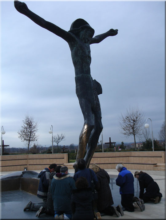 O Cristo que morre de braços abertos na cruz representa a solidariedade de Deus abraçando a humanidade pecadora; ela que, de um lado e de outro, e dos inúmeros motivos padece pela opressão iníqua do pecado e dos sistemas políticos e econômicos. O calvário tornou-se o altar do mundo, onde a graça encerra a sua força e glória, onde Deus revela-se mostrando o verdadeiro rosto da humanidade, onde a humanidade reconhece a sua fragilidade batendo no peito (Lc 23,48), onde a Igreja entende a sua missão evangelizadora e redentora.