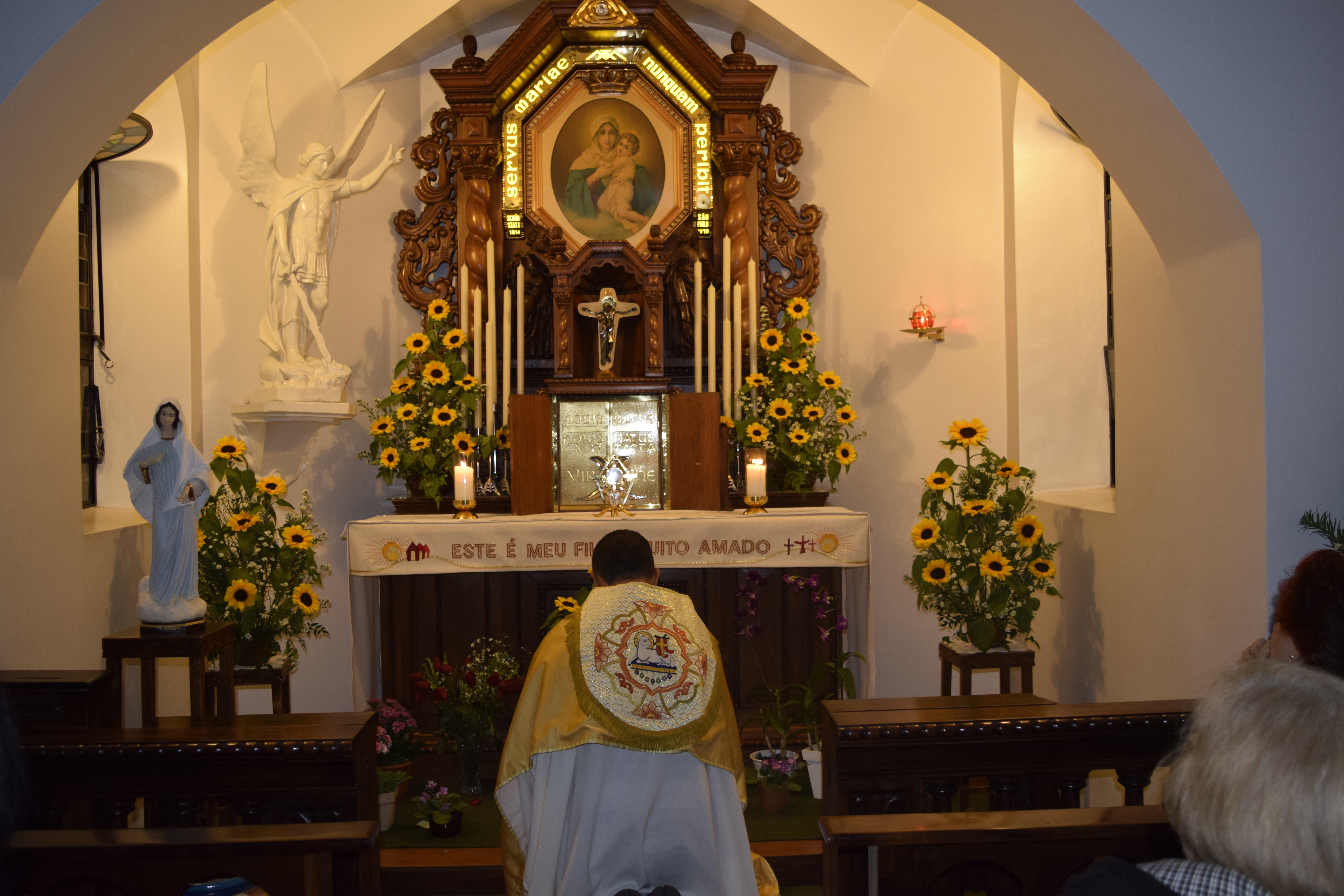 Nesta ocasião Pe.Paulo Sergio levou os peregrinos e devotos a meditarem sobre o amor de Deus oferecido a nós pelas mãos de Nossa Senhora, e ressaltou que santuários na cidade de  São Paulo, como o da Mãe e Rainha são faróis em meios as trevas e as preocupações do dia-a-dia. Foi um encontro de amor e adoração a Jesus pelas mãos de Maria Santíssima, que em sua ultima mensagem dada aos 25 de Julho reforçou novamente, sobre a necessidade de sermos uma oração viva: ”Queridos filhos! Sejam oração e um reflexo do Amor de DEUS para todos aqueles que estão longe de DEUS e dos mandamentos de DEUS.”  Nossa Senhora sempre nos convida a santidade, neste mês  nos encorajou a não desanimar diante de nossa pequenez –“Filhinhos, sejam fiéis e determinados na conversão e trabalhem em vocês mesmos para que, por vocês, a santidade da vida possa ser verdade, e encorajem-se uns aos outros no bem, através da oração, para que sua vida na terra possa ser mais agradável.”  A mensagem na integra você encontra em nosso site.