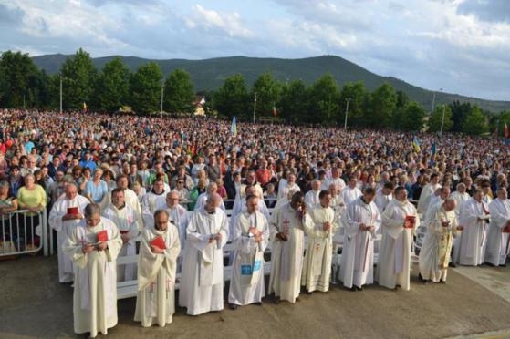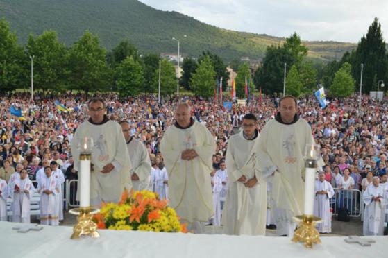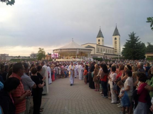 Na quarta-feira, 25 junho de 2014 foi comemorado solenemente em Medjugorje o trigésimo terceiro aniversário das aparições de Nossa Senhora. Além dos muitos peregrinos da Croácia e da Bósnia e Herzegovina, estiveram presentes em Medjugorje grupos de peregrinos da Itália, Hungria, Alemanha, França, Irlanda, EUA, Romênia, China, Vietnã, Porto Rico, Eslovênia, Polônia, Bélgica, Eslováquia, Coréia do Sul, Suíça, Áustria, Austrália, Espanha, Albânia, Brasil, Hong-kong, México, Ucrânia, Líbano, Canadá, Colômbia, Letônia, Lituânia, Portugal, Sirilanka, Argentina, Uruguai e Uganda. Além dos peregrinos vindos pelos meios de transporte comuns, um número considerável deles, especialmente os jovens, vieram a Medjugorje caminhando a pé para pagar promessas feitas a Rainha da Paz e agradecendo por graças recebidas. Durante o dia do aniversário, na igreja paroquial, no altar externo e na Capela da Adoração , foram celebradas 21 missas. Missas em croata foram celebradas às 5:00, 6:00, 7:00, 8:00, 9:00 e as 11:00 h. O programa de oração da noite começou às 18:00 com a oração do Rosário e continuou com a missa das 19:00, que foi celebrada no altar externo da igreja de Medjugorje, pelo Frei Branimir Musa, pároco de Tihaljina, e foi concelebrada por 247 sacerdotes. No dia 24 de junho, a santa Missa da vigília, as 19:00, foi celebrada pelo Frei Miro Sego e concelebrada por 180 sacerdotes. Nesse dia, também foi feita a vigésima terceira edição da tradicional "Marcha pela Paz", do mosteiro de Santo Antonio, na igreja em Humac até a igreja paroquial de Medjugorje.