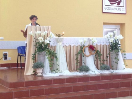 Aconteceu em Medjugorje o 15º Seminário para os casais  de 13 a 16 de julho de 2014. Dele participaram 131 pessoas de 13 países. O tema do Seminário foi: “A fidelidade no matrimonio e na educação dos filhos” e a palestrante foi a Dra. Josefina Skarica. A Conferência foi traduzida em 07 idiomas. Além das palestras matutinas e vespertinas, os participantes do Seminário também tiveram os programas litúrgicos de orações: Rosário e santa Missa, que aconteceu na Igreja de Medjugorje, a Via cruz sobre o Krizevac e a oração do Rosário no Pobdro. O Seminário foi concluído em 16 de julho com uma santa Missa, presidida pelo Pároco de Medjugorje, Frei Marinko Sakota, que também foi o coordenador do Seminário. Depois da Missa, rosários abençoados foram distribuídos aos participantes, os, como convite para continuarem a viverem com Jesus e Maria. Entre os participantes do Seminário encontramos Kreso e Ivanka Mihekovec, vindos de Cazma, casados há 24 anos. Deus deu a eles 08 filhos e quando falam deles ficam repletos de alegria, ainda hoje. Disseram que participaram do Seminário pela 1ª vez e acrescentaram: “Viemos ao Seminário pela 1ª vez em Medjugorje. Gostamos muito e pensamos que deveriam participar mais casais. A Dra. Skarica falou de eventos concretos da vida, que estamos procurando seguir também em nosso matrimonio. Foi muito bonito!”.