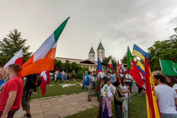 No inicio na celebração, jovens do mundo todo acompanharam as palavras dos anfitriões, os jovens da paróquia de Medjugorje, em seguida teve inicio uma apresentação por países, realizada por jovens de 60 países. O Pároco de Medjugorje, Frei Marinko Sakota, deu as boas vindas aos jovens dizendo: e disse “Bem vindos à Rainha da Paz, à Mãe e a sua escola, que te ama, que te conduz ao seu Filho Jesus, ela conhece o melhor caminho”. Frei Miljenko na sua homilia disse como Medjugorje é um local de graça que nos atrai pelo abraço da Mãe: “Ela nos ama. Ela nos preenche com nossas necessidades básicas e assim reencontramos a paz, o amor para com Deus e o amor para com os homens. Nos tira do mundo virtual, e toca primeiramente os irmãos do Homem, rejeitado e desprezado, que o mundo não suportava, mas que antes de tudo, desejava o bem! Alcancem-no com um olhar puro, sintam-no com as mãos, contemplem a beleza das coisas, pois, você foi criado a imagem de Deus.