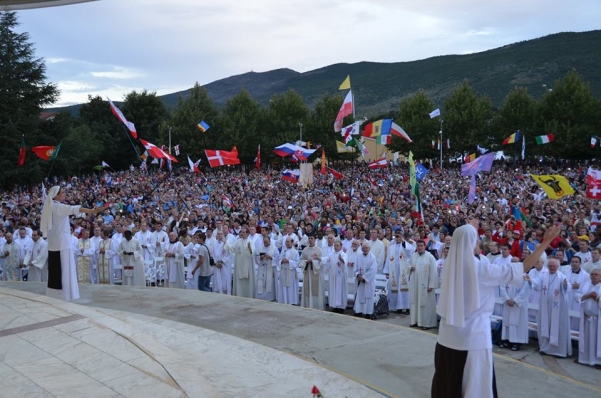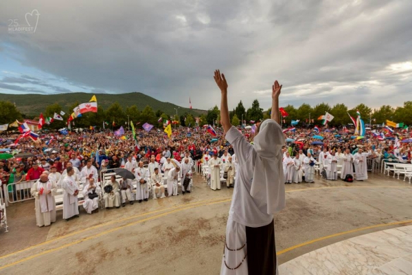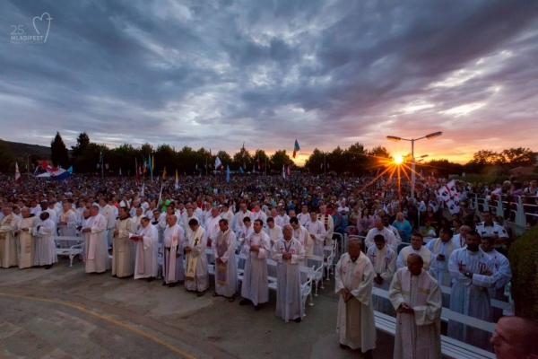 Medjugorje nesses dias está dedicada aos jovens, durante o 25° Encontro Internacional de Oração dos Jovens, cujo slogan neste ano é “Eis ai a Sua Mãe”. Na sexta feira pela manhã, os jovens subiram a colina das aparições, onde foi realizada a oração matinal, que foi conduzida pelo frei Marinko Sakota, pároco de Medjugorje. A abertura oficial do festival foi realizada na quinta feira, dia 31 de julho, no altar externo. O terço teve inicio às 18 horas e foi rezado pelo frei Dragan Bolcic, a santa missa de abertura começou as 19:00 e foi celebrada pelo provincial da província franciscana da Herzegovina, frei Miljenko Steko e concelebrada por 335 sacerdotes.