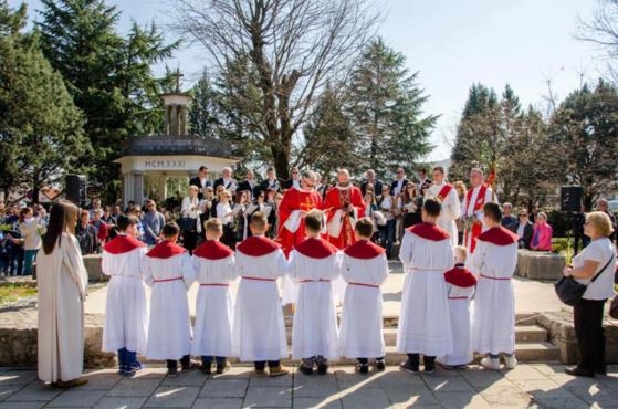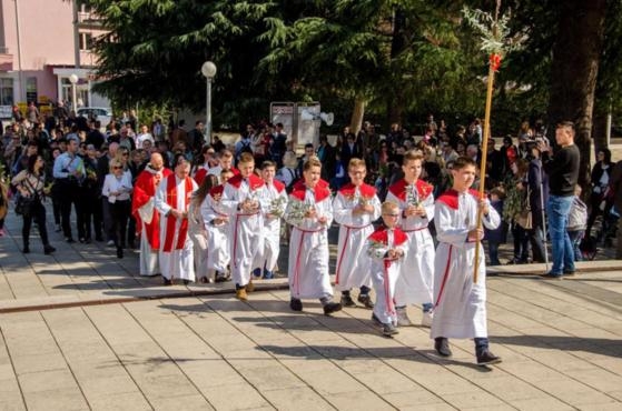 O Domingo de Ramos ou da Paixão do Senhor introduz-nos na Semana Santa, sendo o culminar da preparação para a maior festa cristã: a Páscoa. A 20 de Março, a liturgia do Domingo de Ramos teve início, como nos anos anteriores, no lugar onde existem as fundações da antiga igreja paroquial. Após o anúncio do Evangelho, que relata a entrada do Senhor em Jerusalém, e da bênção dos ramos de oliveira, dos acólitos, leitores, cantores, padres e povo de Deus – isto é, de todos os paroquianos e peregrinos – a procissão litúrgica seguiu em direção ao altar externo da Igreja Paroquial de S. Tiago onde, às 11:00, o Frei Karlo Lovric presidiu à celebração da Santa Missa da Paixão do Senhor. O coro paroquial dirigido pela Irmã Irena Azinović animou a celebração litúrgica. A homilia foi proferida pelo Frei Vjekoslav Milićević.