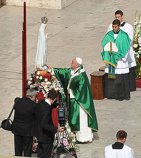 Mais de 100 mil fiéis participaram neste domingo, 13, da missa pela Jornada Mariana na Praça São Pedro. Papa Francisco presidiu a cerimônia, promovida por ocasião do Ano da Fé e com ele, concelebraram mais de mil sacerdotes. Estava presente a Imagem original de Nossa Senhora de Fátima, que depois do ingresso do Papa, foi entronizada solenemente do obelisco até o altar.