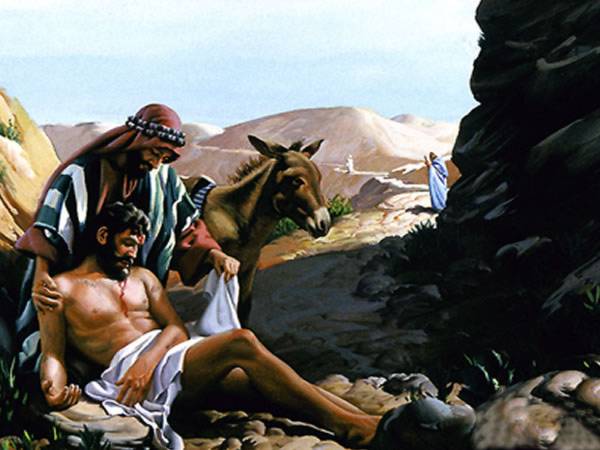 A parábola prossegue narrando que o Bom Samaritano, sem olhar a gastos, confia o homem ferido aos cuidados do dono de uma pensão: este representa a Igreja, a quem Jesus confia os atribulados no corpo ou no espírito.